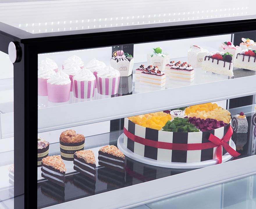 | لامعة داخلية ليد فوق وتحت كل رف | 2 أرفف زجاجية قابلة للتعديل |